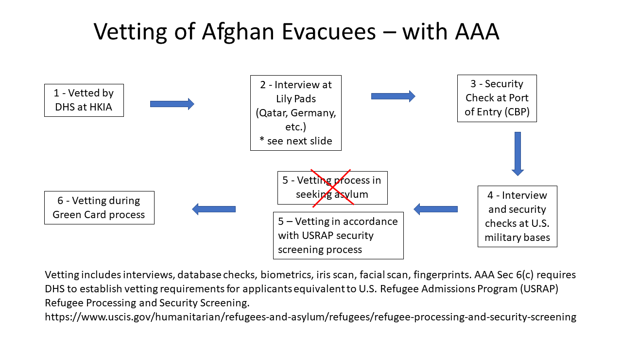 Under the Afghan Adjustment Act additional screening and vetting is conducted before an individual receives